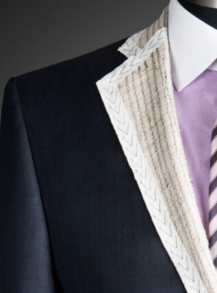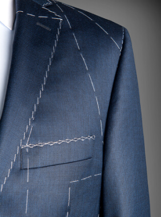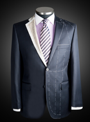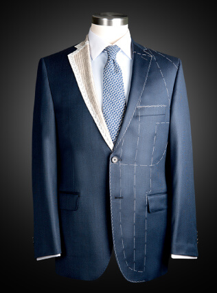 Prendas hechas con proceso half canvas y elaboradas con entretelas de alta calidad no fusionables lo que ofrece una excelente estructura antropométrica al vestirlas. Son elaboradas a mano en un porcentaje alto tanto en su parte interna como externa (costuras decorativas). Las piezas son prehormadas lo que hace que se ajusten de mejor manera al cuerpo, ofreciendo un mejor confort.